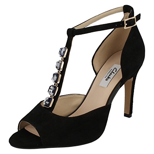 Best Seller! Ladies Clarks T-Bar Occasion Wear Sandals Curtain Crush - Black Suede - UK Size 5.5D - EU Size 39 - US Size 8M Review